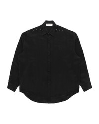 Longsleeve lightweight cupro shirt with added eyelets along shoulder line Color: Washed Black - SELF FABRIC: 100% CUPRO
