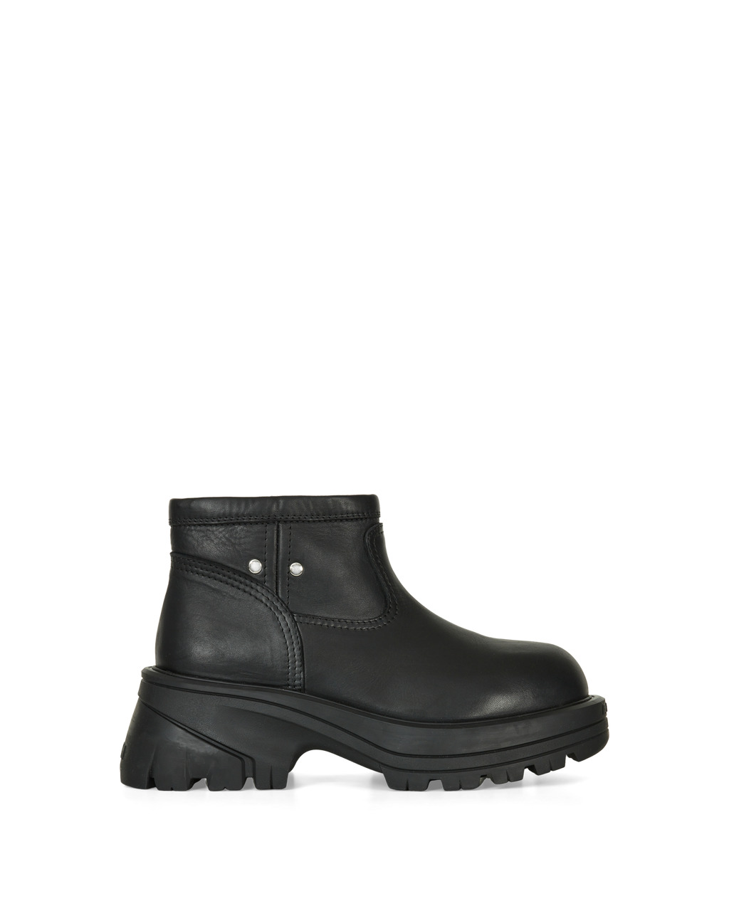Low top leather work boot with decorative flat rivet detailing Color: Black - UPPER: 100% CALF LEATHER - LINING: 50% WOOL 50% CALF LEATHER - SOLE: 100% RUBBER (TR)