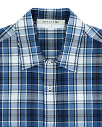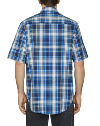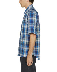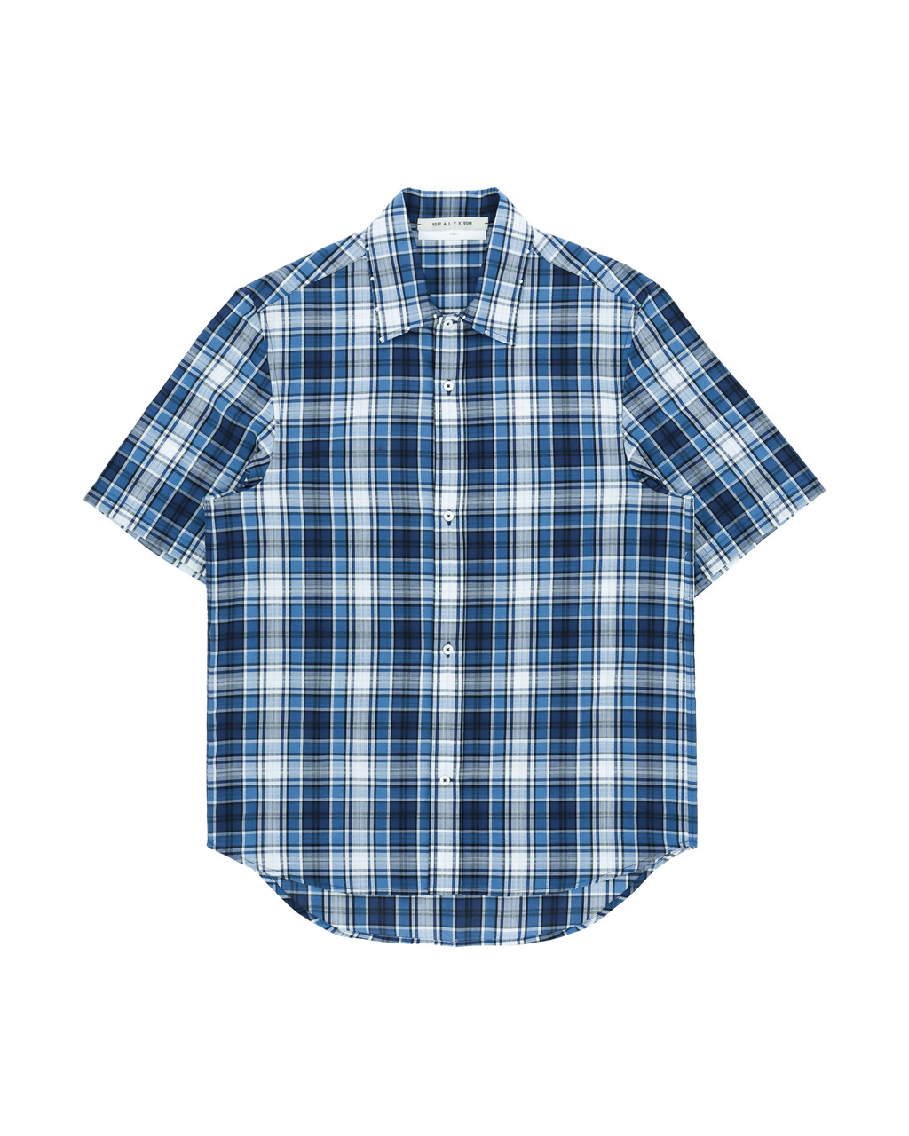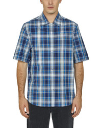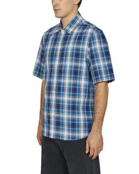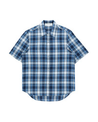 Short sleeved blue plaid shirt with monogram detail on left chest Color: Blue - SELF FABRIC: 100% CO