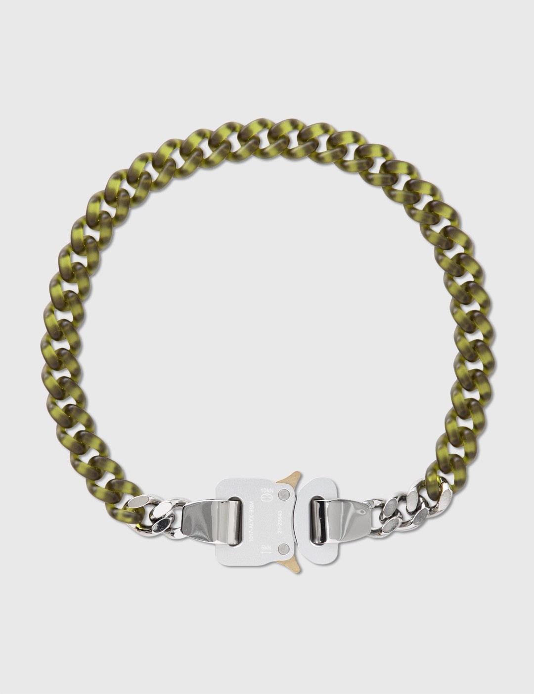 - 1017 ALYX 9SM - Nylon And Metal Chain Necklace - Nylon curb chains - Signature metal rollercoaster buckle closure - Color: Military Green - Material: Nylon, Metal - See more Necklaces, Jewelry and Accessories SIZING Approximate measurement: - S - Max. Length: 38cm - M - Max. Length: 41cm - L - Max. Length: 44cm