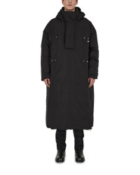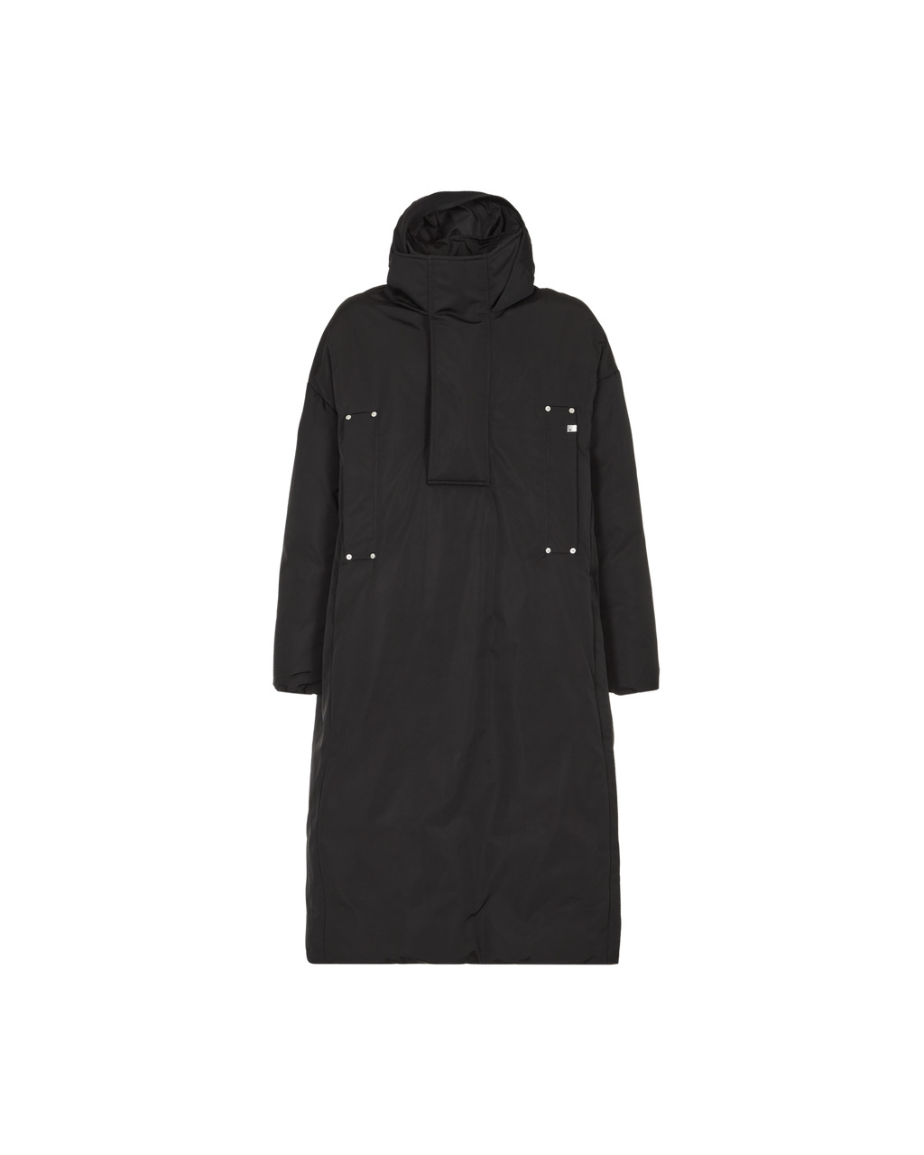 Long pullover coat with front pockets and zip up turtleneck. Color: Black - Made in Italy - SELF: 55% Nylon, 45% Cotton - FILLING: 100% Polyester - True to size - Model is wearing size M