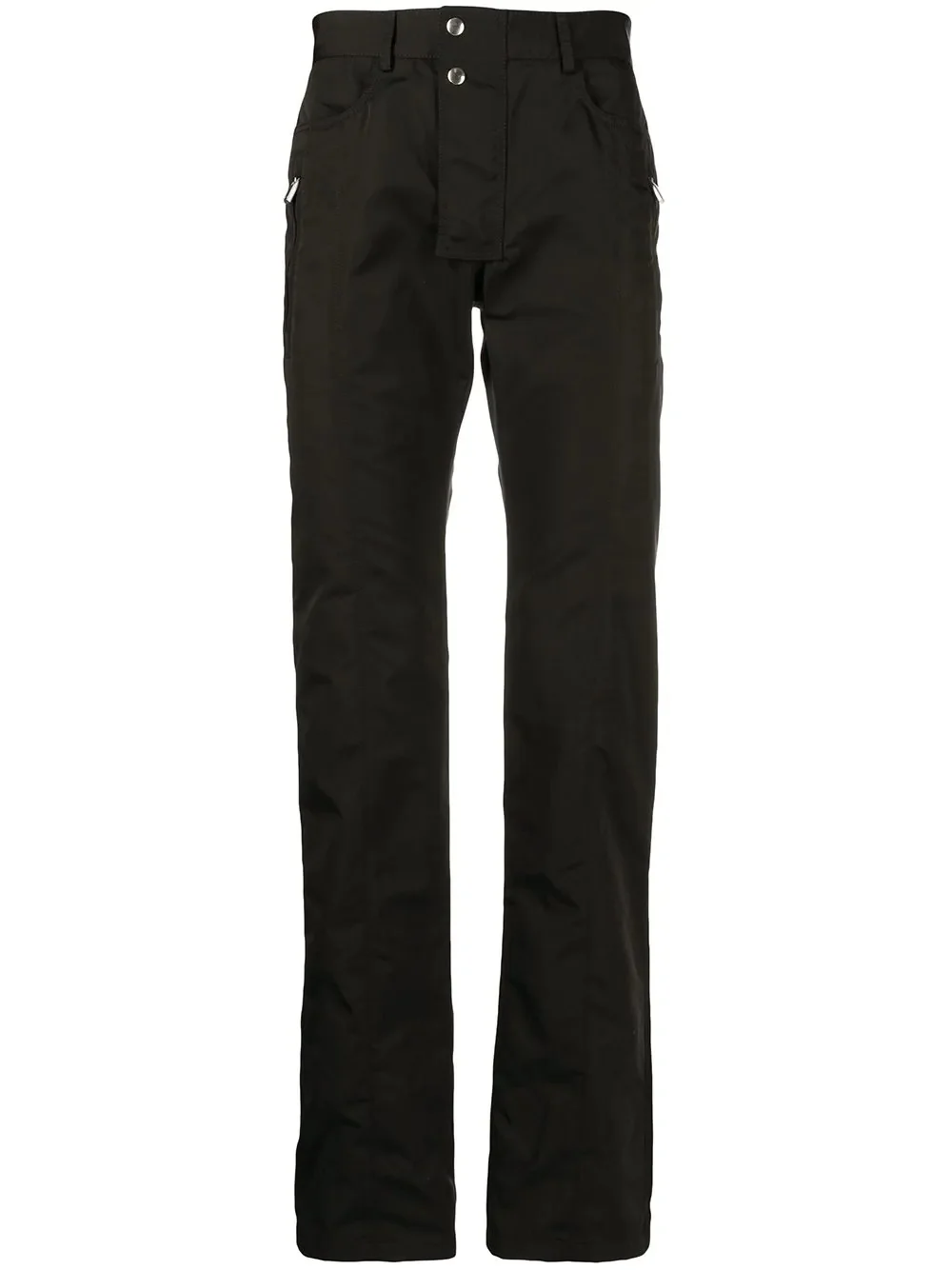 slim-fit zip-detail trousers black logo patch to the rear slim cut mid-rise front button and zip fastening two side zip-fastening pockets two rear zip-fastening pockets Made in Italy Composition Metallized Polyamide 55%, Cotton 45% SIZE & FIT Model measurements Height 6 ft 0 in(1.84 m) Bust/Chest 35.43 in(90 cm) Hips 35.82 in(91 cm) Waist 28.74 in(73 cm) FittingInformation This piece fits true to size. We recommend you get your regular size Designed for a slim fit at the waist and loose over the leg Made with a lightweight non-stretch fabric Washing instructions Hand Wash