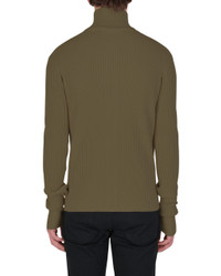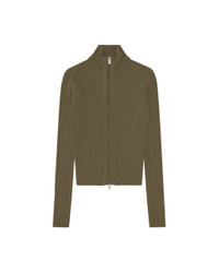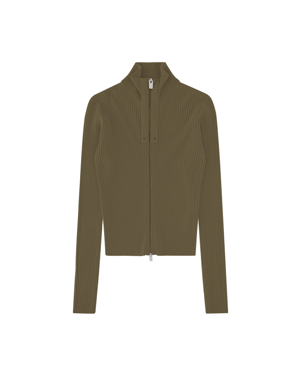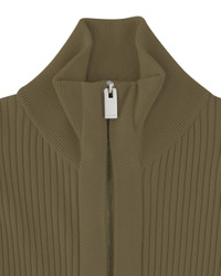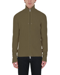 Soft knit high collar cardigan with signature silver double zip closure. Color: Military Green - Made in Italy - 89% Viscose 8% Nylon 3% Elastane - True to size
