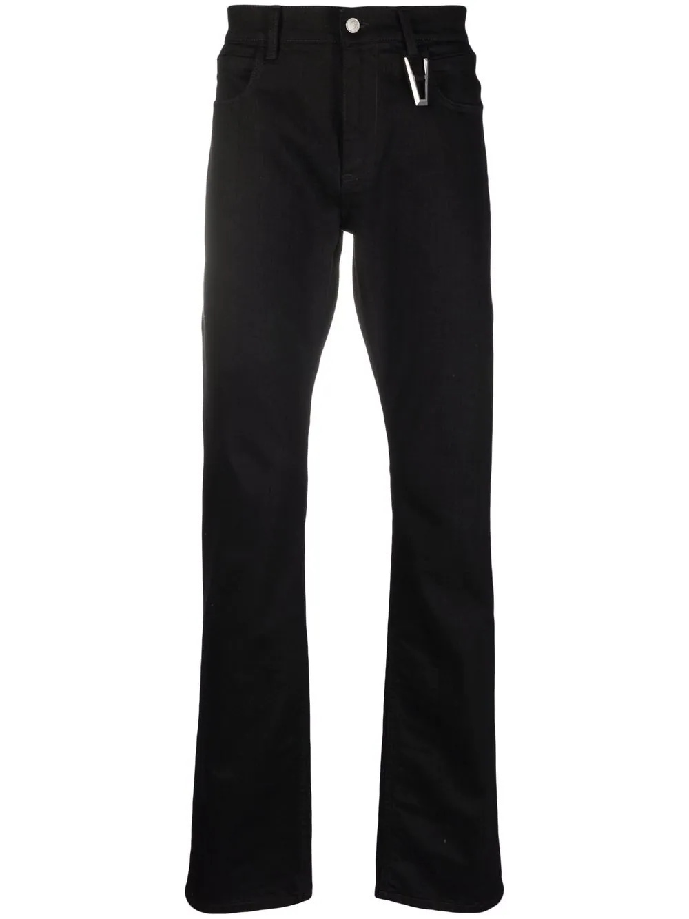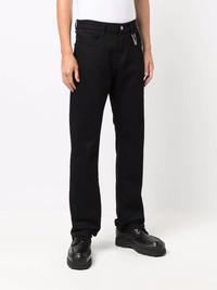 straight-leg jeans black cotton logo plaque belt loops front button and zip fastening classic five pockets Made in Italy Composition Cotton 98%, Polyurethane 2% SIZE & FIT Model measurements Height 6 ft 1 in(1.86 m) Bust/Chest 35.43 in(90 cm) Hips 35.43 in(90 cm) Waist 29.92 in(76 cm) FittingInformation This piece fits true to size. We recommend you get your regular size Regular fit Made with a mid-weight non-stretch fabric Washing instructions Machine Wash