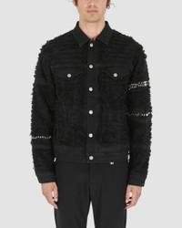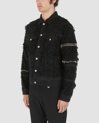 Part of the Blackmeans collaboration. A classic fit denim jacket with signature shredding technique, hand applied studs, and embroidered details. Color: Black - Made in Italy - 98% Cotton, 2% Elastane - True to size - Model is wearing size M