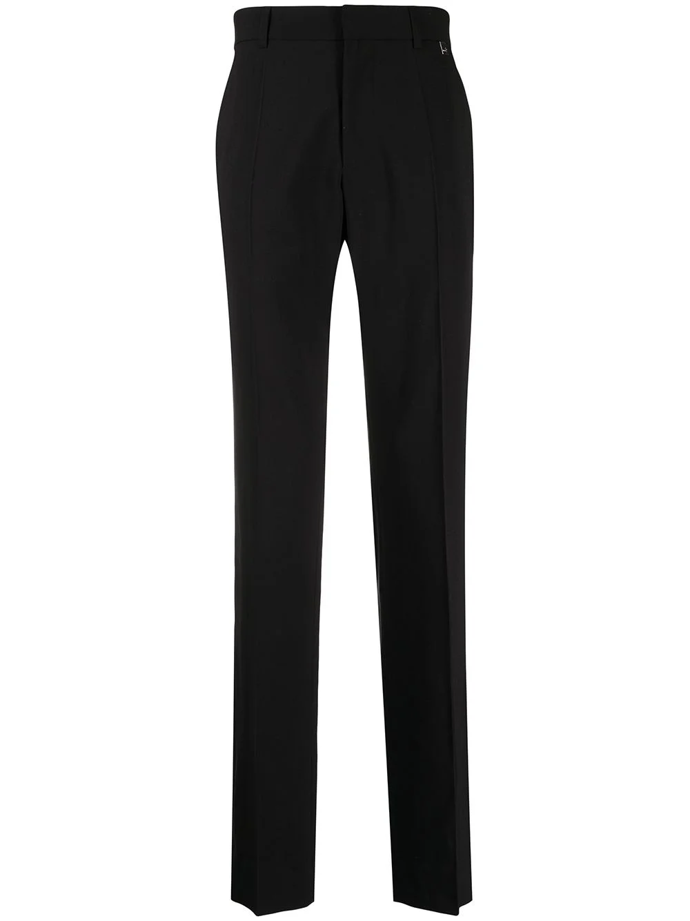 tailored-cut straight-leg trousers 1017 Alyx 9SM presents its own take on formal tailoring with these black slim-cut trousers. Made from a virgin wool blend, this refined pair are subtly elevated by front pleats and a silver-tone logo plaque attached to just below the waistband. Made in Italy Composition Body: Virgin Wool 54%, Polyester 45%, Spandex/Elastane 1% SIZE & FIT Model measurements Height 6 ft 0 in(1.84 m) Bust/Chest 35.43 in(90 cm) Hips 35.82 in(91 cm) Waist 28.74 in(73 cm) FittingInformation This piece fits true to size. We recommend you get your regular size Designed for a slim fit at the waist and loose over the leg Made with a mid-weight stretch fabric Washing instructions Hand Wash