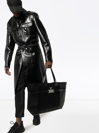 tri-buckle tote You wouldn't leave your house without your keys or phone, so why would you think twice about heading out without a useful accessory to carry your essentials in? Start your day off right and keep everything you need to take on your busy schedule in this black leather tri-buckle tote from 1017 ALYX 9SM which has three sleek straps with an interlocking side-release buckle. Don't worry about a thing, you've got it in the bag. Featuring top handles, a rectangular body, silver-tone hardware and a suede patch pocket to the front. Made in Italy Composition Outer: Calf Leather 100% SIZE & FIT Model measurements Height 6 ft 2 in(1.88 m) Bust/Chest 35.03 in(89 cm) Hips 35.82 in(91 cm) Waist 27.95 in(71 cm) Measurement HANDLE 8.26 in(21 cm) HEIGHT 14.56 in(37 cm) WIDTH 24.4 in(62 cm)