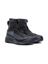 High-top piece-dyed bonded jersey, ripstop, and leather sneakers in black. Smudging and bonded trim throughout. · Paneled construction · Logo embossed at round toe · Concealed lace-up and zip closure · Logo appliqué at padded tongue · Elasticized collar · Webbing pull-loop at heel collar · Logo embossed at heel counter · Treaded Contagrip® rubber sole Each item is unique. Please note coloration may vary. Part of the 11 by Boris Bidjan Saberi x Salomon collaboration. Supplier color: Black dye