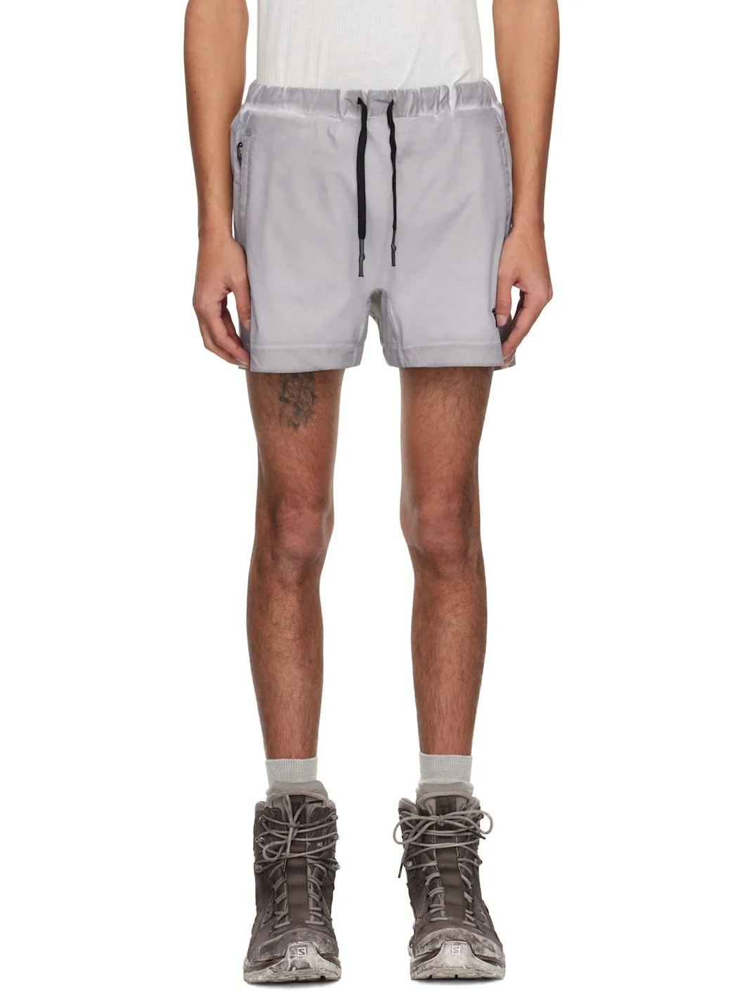 Garment-dyed stretch nylon taffeta swim shorts. · Drawstring at elasticized waistband · Two-pocket styling · Logo embroidered at leg · Gusset at inseam · Vented outseams · Eyelet and extended trim at back · Integrated brief-style mesh lining Supplier color: Light grey 71% polyamide, 29% elastane. Made in Portugal 251610M208000