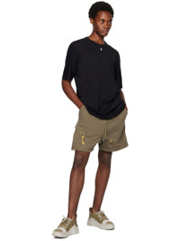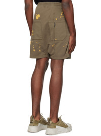 Garment-dyed cotton fleece shorts. Bleached effect throughout. · Drawstring at elasticized waistband · Six-pocket styling · Zip pocket at outseams · Drawstring at back Each item is unique. Please note that coloration may vary. Supplier color: Dark oak camo 100% cotton. Made in Portugal 232610M190002