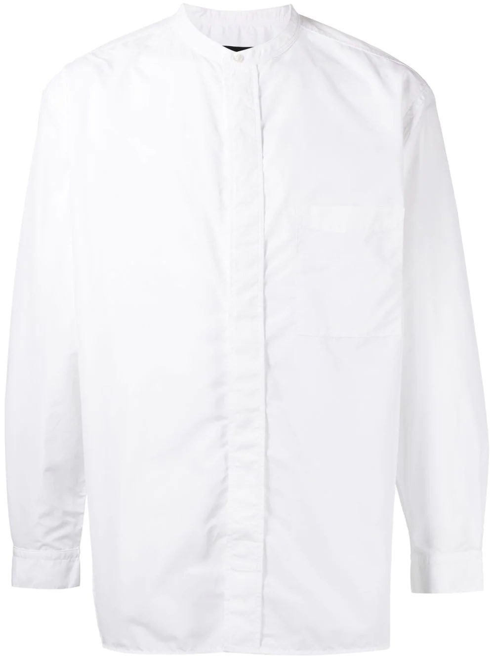 Cotton and nylon-blend shirt. · Band collar · Concealed button closure · Patch pocket at chest · Vented side-seams · Adjustable single-button barrel cuffs · Shirttail hem Supplier color: White 60% cotton, 40% polyamide.