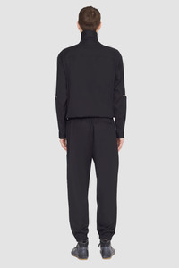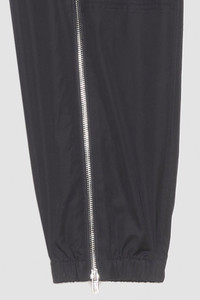 Sateen jogger with an elasticated drawstring waist. Side slip pockets and single back welt pocket with snap button closure. Features curved zip details at the front with cargo pockets at the top ends and adjustable leg openings at the elasticated cuffs. Relaxed fit. - Elasticated drawstring waist - Curved zip details at front - Side cargo pockets - Elasticated cuffs - Relaxed fit - Model Height: 6' 1/2, Waist: 29', Hips: 35' and wearing a size M