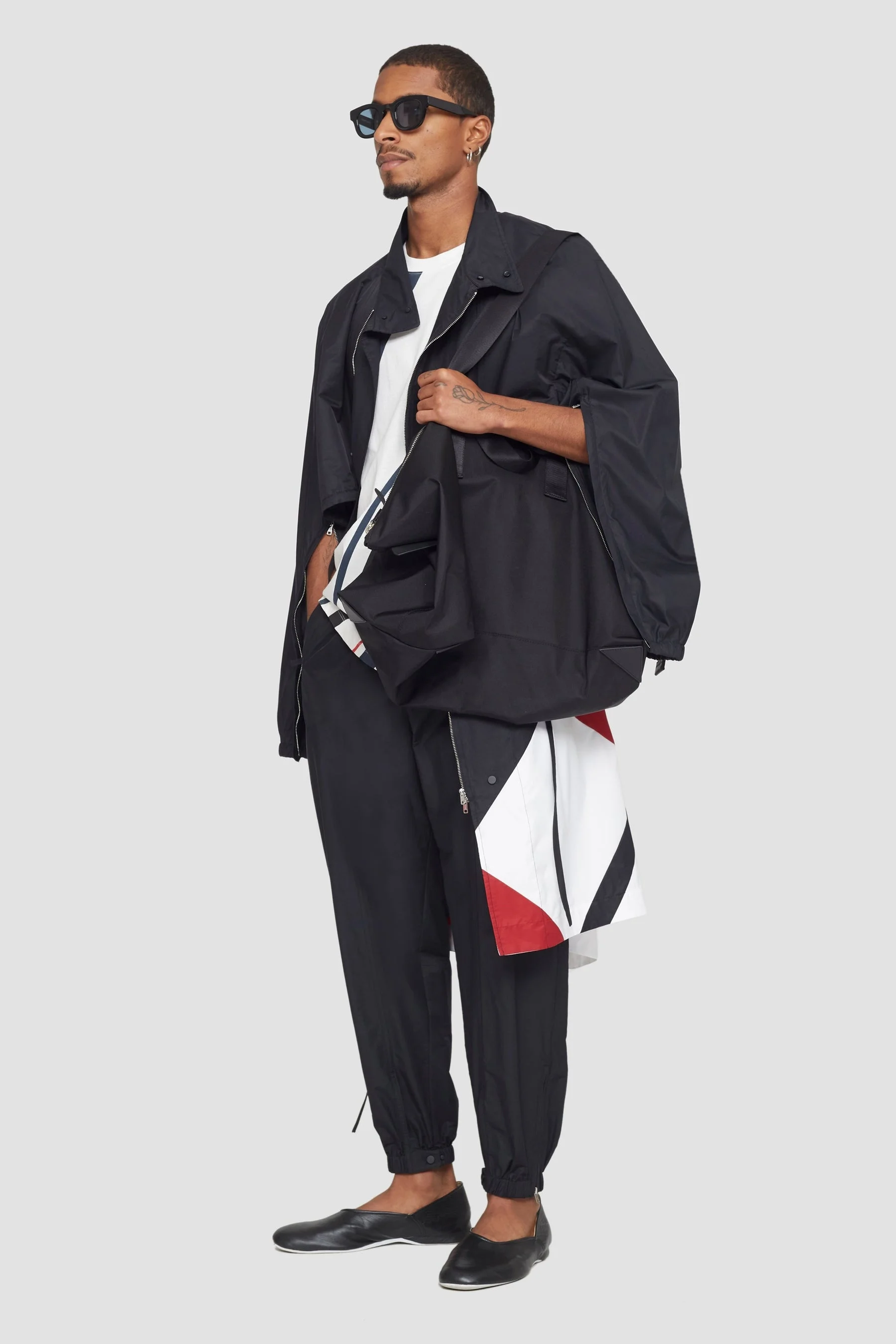Patchwork parachute parka in technical cotton blend. Features a funnel neck and drawstrings at the storm flap and waist. Long sleeves with front zips and elastic cuffs. Side slip pockets. Snap button and slight asymmetric zip front closure. - 70% Cotton, 30% Nylon - Measurements are Height: 5"10', Inseam: 29', Waist: 30', Shirt: 15', Suit: 37' and is wearing a size M - Hand wash cold - P2118966DVTMBLKMULTI
