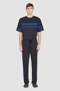 Track pant in pique weave with an engineered jacquard stripe in contrast blue at the sides. Elasticated drawstring waist. Side zip pockets and a single back patch pocket. Tapered leg with adjustable zip cuffs. - Elasticated drawstring waist - Contrast jacquard stripe at sides - Tapered leg - Zip cuffs - Model Height: 6' 1/2, Waist: 29', Hips: 35' and wearing a size M