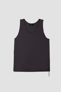 Muscle tank in technical cotton blend with a scoop neckline. Side zip and adjustable hem. Relaxed fit. - 70% Cotton, 30% Nylon - Measurements are Height: 5"10', Inseam: 29', Waist: 30', Shirt: 15', Suit: 37' and is wearing a size M - Machine wash cold - P2112030DVTM