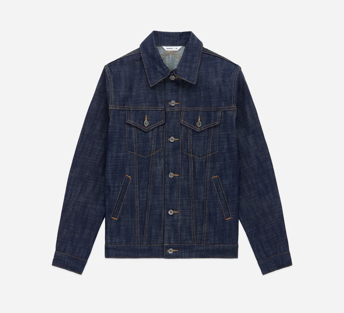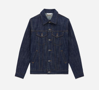 For our 20th anniversary, we have produced a special edition jean jacket featuring denim woven by a small mill in Hiroshima, Japan. This 15.4oz denim utilizes organic cotton from Turkey, which is spun in a special process to create an unevenly twisted yarn. The yarn is then rope dyed twice the average amount in a natural indigo dye bath sourced from India, to create a unique blue shade with heavily saturated areas and lighter areas where the weft pokes through. This denim is sure to fade beautifully and will become a garment that is treasured for a long time. Trims include gunmetal YKK punch-through rivets and shanks, and a special 20 year anniversary vegetable-tanned leather patch. Made in USA. Details - 15.4oz indigo denim woven in Hiroshima, Japan - 100% cotton 8oz twill pocketing - Zigzag stand-collar reinforcement stitching - 20y Anniversary vegetable tanned leather patch - Gunmetal YKK shanks - Crossed back yoke - Made in USA