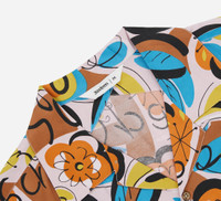 Our Vacation Shirt design takes inspiration from classic open-collar leisure shirts of the 50's coupled with an updated, modern fit. The shirt can be worn with the collar open or buttoned all the way up with the loop. This version features a Japanese rayon fabric with a dry, silky hand. The print is a playful, hand-painted take on a traditional aloha pattern. PLEASE NOTE: Sale items are final sale and are not eligible for returns. !split! !details! Details - 100% Viscose Rayon - Single front chest pocket - Open Collar - Coconut shell buttons - Crossed back yoke - Made in India