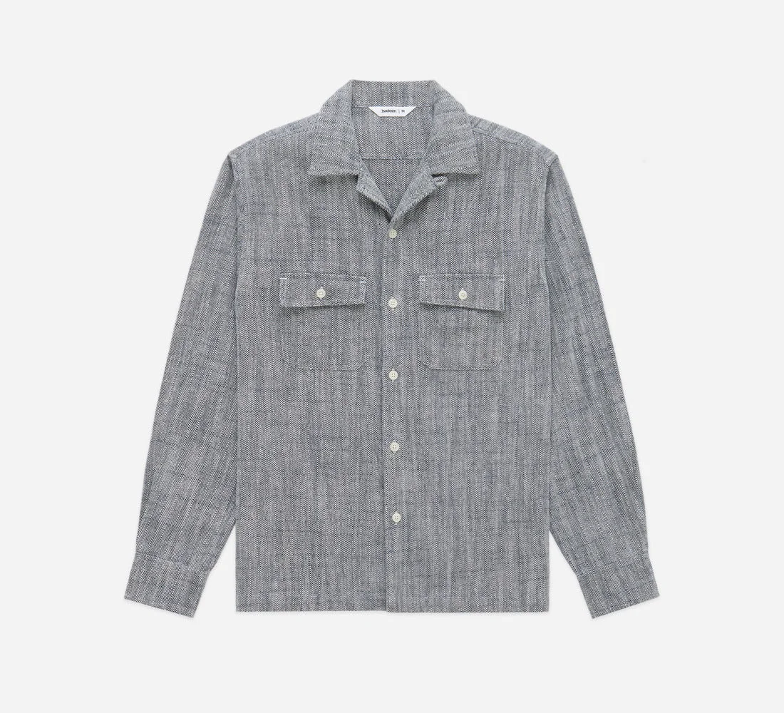 Camp Shirt - Black Cotton/Linen HBT
