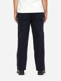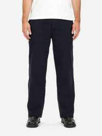 Our Fatigue Pant takes design cues from the military surplus pant that was standard issue for the US Army. This pant silhouette is the roomiest of all our bottoms and features a straight leg, higher rise, and roomy top block. This season, we sourced a heavyweight HBT fabric from Japan that has a lot of heft to it. Off the loom, this fabric is very crunchy and starchy so we worked with the mill to develop a rinse on the fabric that softened the hand considerably. PLEASE NOTE:Sale items are final sale and are not eligible for returns. Details - 100% cotton fabric woven in Japan - Replica BDU buttons - Rinsed - Gusseted back pockets - Made in USA