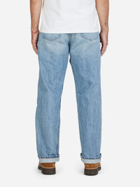 The RS-100xv jean features our flagship 14.5 oz indigo selvedge denim as its foundation. Each jean is then hand sanded in the leg and seat area to create a natural fade, then stonewashed to create a marbling effect across the entire pant, and finally, bleached down with a slight earthy tint to recreate a true vintage color that only happens over years of wash and wear. Our RS cut is our widest fit developed with more room in the thigh, a higher rise, and a wider leg opening than our other offerings. The cut is generous and comfortable, perfect with a break or a clean cuff. Details - 14.5oz indigo warp/white weft selvedge woven in Okayama, Japan - Custom vintage stonewash treatment - Custom gunmetal shanks and rivets - Selvedge fly and coin pocket detailing - Tan roughout leather patch - Made in USA