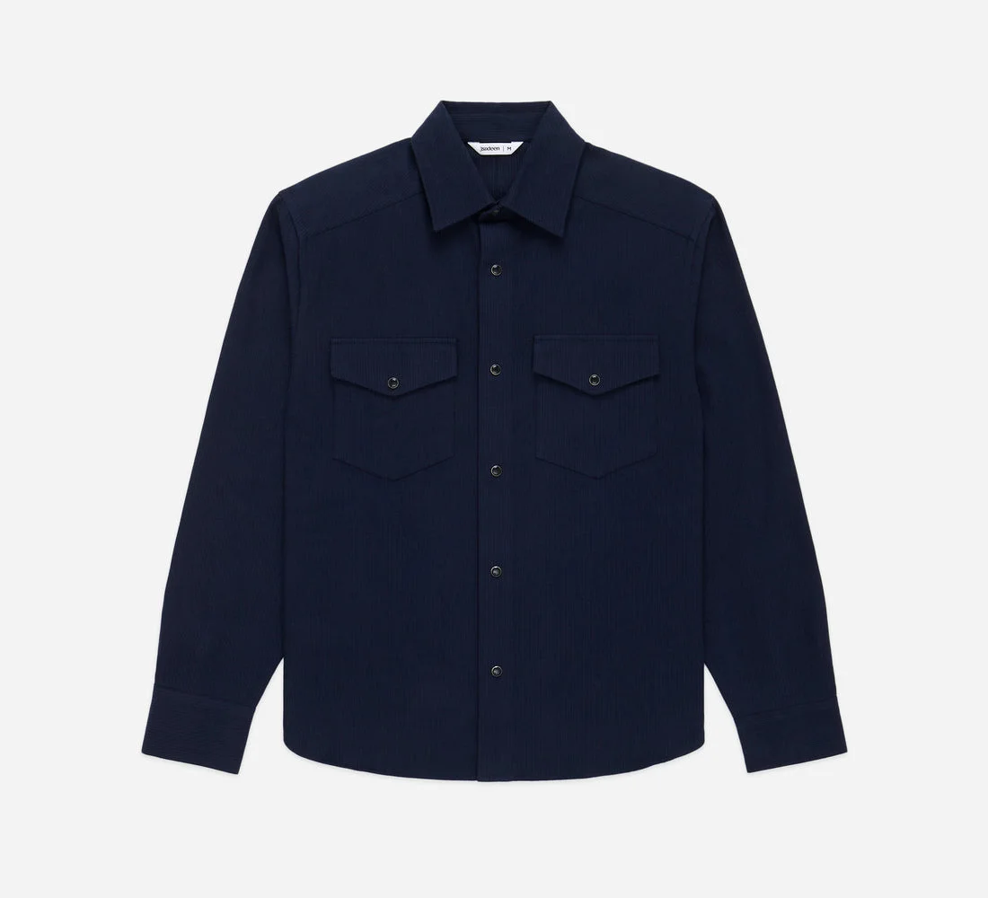 Our Snap Western Shirt is a nod to westernwear through the modernized 3sixteen lens. The shirt is constructed in a brushed shadow stripe fabric and finished with black pearl snaps and a relaxed fit. Made in Portugal. PLEASE NOTE: Sale items are final sale and are not eligible for returns. Details - 100% cotton - Crossed back yoke - Black pearl snaps - Made in Portugal