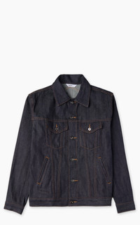 3sixteen's version of the iconic Type 3 Denim Jacket - now with an updated fit with shorter length and wider shoulders. Timeless in its silhouette, it matches almost every casual outfit perfectly. The Jacket comes with several nice details such as japanese corduroy lined cuffs and pockets, 14.5oz selvedge denim from Kuroki and a heavy leather patch inside. - Style: Type 3S Denim Jacket - Fit: Slim fit - Color: Indigo - Material: 100% cotton - Made from 14.5oz Japanese raw selvedge denim from Kuroki Mills, Japan - Fabric exclusively woven for 3sixteen - Sanforized - Cuffs and pockets lined with corduroy from Japan - Selvage line inside of the button placket - Custom made branded metal buttons - 2 chest pockets with button closure - 2 slantet pockets - Heavy leather patch on the inside back hem - Zig zag stich on collar - Made in USA Our model is 183cm, 73kg - wears size M