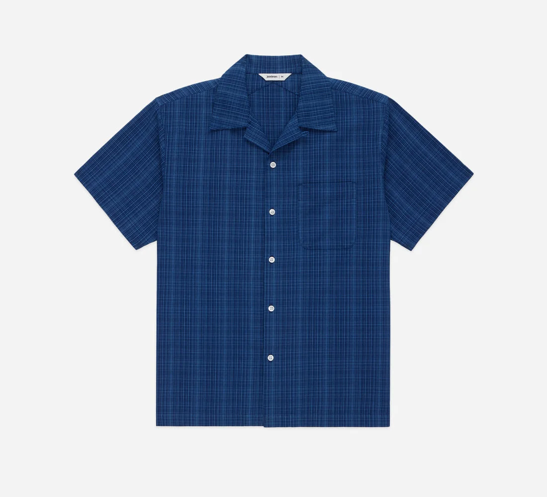 Our Vacation Shirt design takes inspiration from classic open-collar leisure shirts of the 50's coupled with an updated, modern fit. The shirt can be worn with the collar open or buttoned all the way up with the loop. This season's fabric is a hefty cotton microcheck woven with indigo dyed yarns that will fade beautifully with wear and wash. Details - 100% Cotton - Single front chest pocket - Open collar - Mother of pearl buttons - Crossed back yoke - Made in India