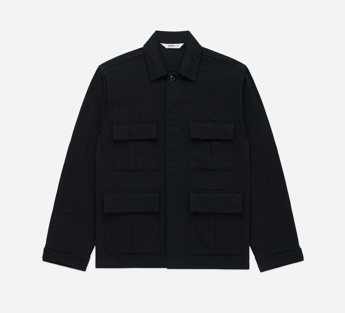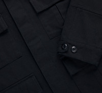 The BDU is modeled after vintage US Army battle dress uniforms. Four front pockets, two of which have hidden side entry hand warmer pockets, make for a functional outerwear piece that can also be layered under a topcoat when the temperatures drop. The jacket is crafted of a Japanese back satin fabric with a slight nep that will fade and soften with wear. PLEASE NOTE: Sale items are final sale and are not eligible for returns. Details - 100% cotton fabric woven in Japan - Hidden front placket - Center bellow pockets - Dual functioning hip pockets - Replica BDU buttons - Made in India