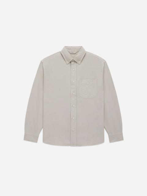The Big Oxford is a modern, casual take on the traditional oxford. The shirt is cut with a wide chest and shoulders and looser sleeves. The generous proportions are matched with a carefully considered length and sleeve length so the shirt maintains its oversized feeling without appearing too big. We used a heavyweight hemp oxford fabric this season that's been garment dyed for a perfectly lived-in color. Details - 52% Cotton 48% Hemp - Mother of pearl buttons - Garment dyed - Made in Portugal