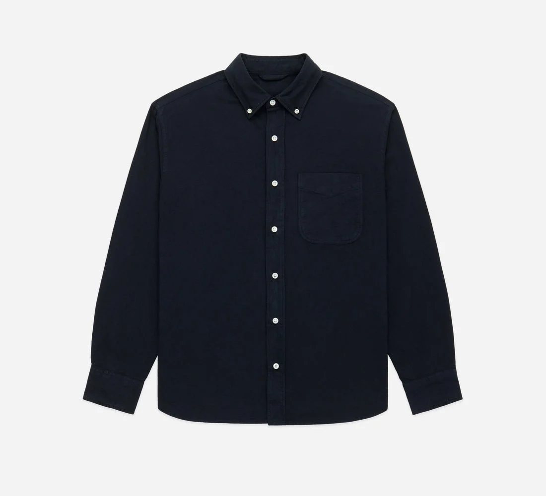 The Big Oxford is a modern, casual take on the traditional oxford. The shirt is cut with a wide chest and shoulders, coupled with looser sleeves. The generous proportions are matched with a carefully considered body and sleeve length so the shirt maintains its oversized feeling without appearing too big. The shirt has been garment dyed for a perfectly lived-in color. Made in Portugal. Details - 100% Cotton - Mother of pearl buttons - Garment dyed - Made in Portugal