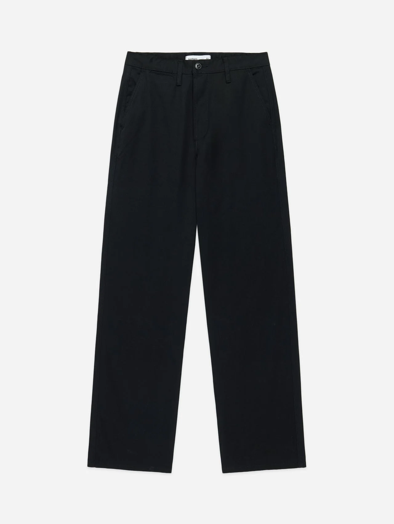 Our Officer Chino's relaxed silhouette is inspired by vintage US Navy chinos. Constructed with a slubby Japanese chino twill, these chinos have a wide leg fit, high rise, and generous thigh. The fabric starts off with a dry hand and subtle texture that becomes more apparent with wear and wash as the fabric softens. They are finished with corozo buttons and double needle stitching throughout. ATTENTION: Although this fabric is sanforized, it can shrink up to 1" on the first wash if hot washed and dried. With a cold wash and hang dry, shrinkage will be minimal. Please take potential shrinkage into account when getting measured for a hem. Details - 100% cotton chino twill woven in Japan - Corozo buttons - Coin pocket below waistband - Welt back pockets - Made in USA