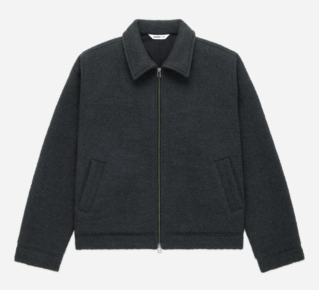 The Club Jacket is a clean zip-front jacket modeled after vintage car club or garage jackets. The simplicity of this style allows the fabrics to shine. For FW25, we sourced an amazing boucle fabric that has a beautiful hand from its plush irregularity. The fabric is predominantly wool with a small amount of nylon to allow the wool fibers to loop for the boucle effect and to give added strength and longevity; there are also alpaca and angora fibers blended in to add to the soft, plush hand. The lining is a densely woven cotton with a super high thread count that feels like percale in its silkiness. The jacket is finished with a two-way YKK zipper and two side entry pockets, as well as an internal chest pocket for added storage. Details - Shell: 76% Wool/15% Nylon/7% Alpaca/2% Angora - Lining: 100% Cotton - Straight bottom hem - Welt front pockets - Hidden internal pocket - YKK gunmetal double zipper - Made in India