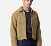 The Club Jacket is a clean zip-front jacket modeled after vintage car club or garage jackets. The simplicity of this style allows the fabrics to shine. For FW25, we sourced an amazing boucle fabric that has a beautiful hand from its plush irregularity. The fabric is predominantly wool with a small amount of nylon to allow the wool fibers to loop for the boucle effect and to give added strength and longevity; there are also alpaca and angora fibers blended in to add to the soft, plush hand. The lining is a densely woven cotton with a super high thread count that feels like percale in its silkiness. The jacket is finished with a two-way YKK zipper and two side entry pockets, as well as an internal chest pocket for added storage. Details - Shell: 76% Wool/15% Nylon/7% Alpaca/2% Angora - Lining: 100% Cotton - Straight bottom hem - Welt front pockets - Hidden internal pocket - YKK gunmetal double zipper - Made in India