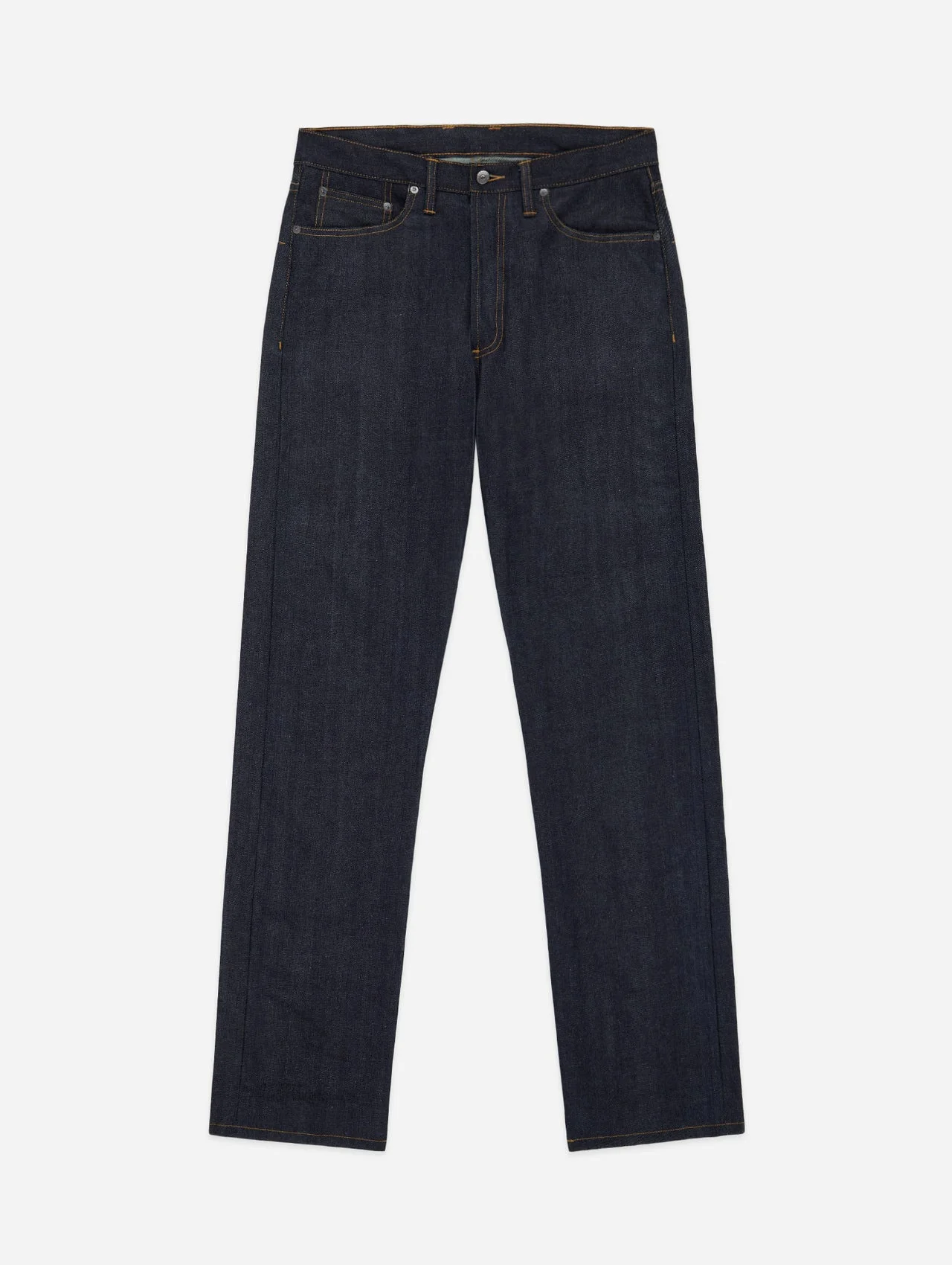 The CS-101x jean is cut and sewn in San Francisco, featuring a raw 12oz selvedge denim that is custom woven for us in Okayama, Japan by Kuroki Mills. Our CS cut is a vintage-inspired fit featuring a high rise, straight back yoke, and a roomy top block with full thighs and a very slight taper from the knee down. Each jean is given a light rinse to remove all shrinkage and make them incredibly comfortable from the first wear. The jean is finished with a hairy suede leather patch along with branded gunmetal YKK rivets and shanks. Made in USA. Sizing: This denim is sanforized and any further shrinkage is minimal. You can expect the waist to stretch about 1" over the first 30 wears. When new, the jeans should be snug around the waist without being uncomfortably tight. Details - 12oz indigo warp/white weft selvedge woven in Okayama, Japan - Custom gunmetal shanks and rivets - Selvedge fly and coin pocket detailing - Tan roughout leather patch - Made in USA