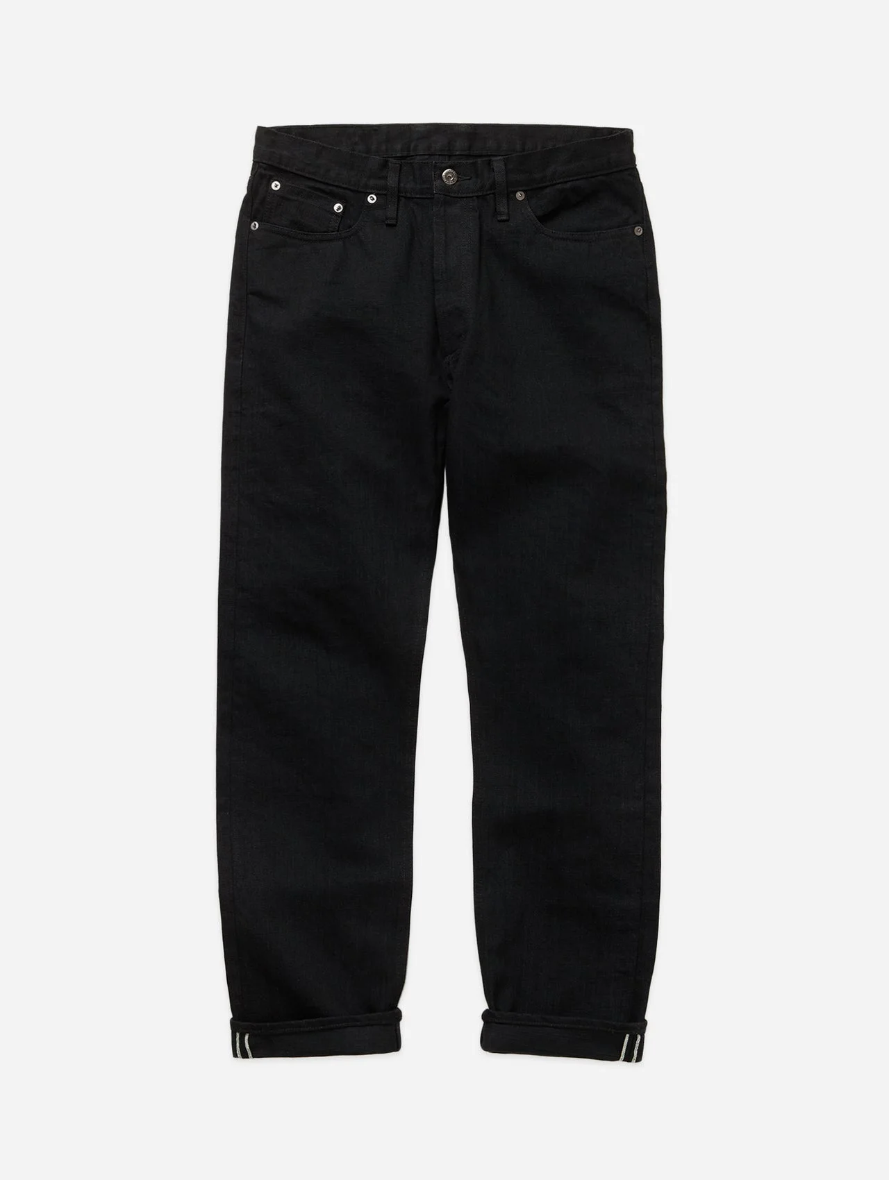 The CS-220xk jean is cut and sewn using a brand new loomstate denim produced exclusively for us by Yoshiwa Mills in Okayama, Japan. This Double Black selvedge denim consists of black warp and black weft threads that have been woven at low tension to give it a rough, abrasive hand that will yield beautiful fading results over time. We then give the jean a rinse to eliminate shrinkage and bring out the texture and character of the fabric even further. Our CS (Classic Straight) cut is a vintage straight leg cut with a high rise, room in the top block and a slight taper from the knee down. Trims include gunmetal YKK punch-through rivets and shanks, and a roughout leather patch. Made in USA. Sizing: This jean has been given a hot rinse, so further shrinkage is minimal. You can expect the waist to stretch 1-1.5" over the first 30 wears. Details - 13.25oz raw selvedge woven in Okayama, Japan - Low tension unsanforized denim (rinsed - no shrinkage) - Emerald green selvedge ID - Black roughout leather patch - Made in USA