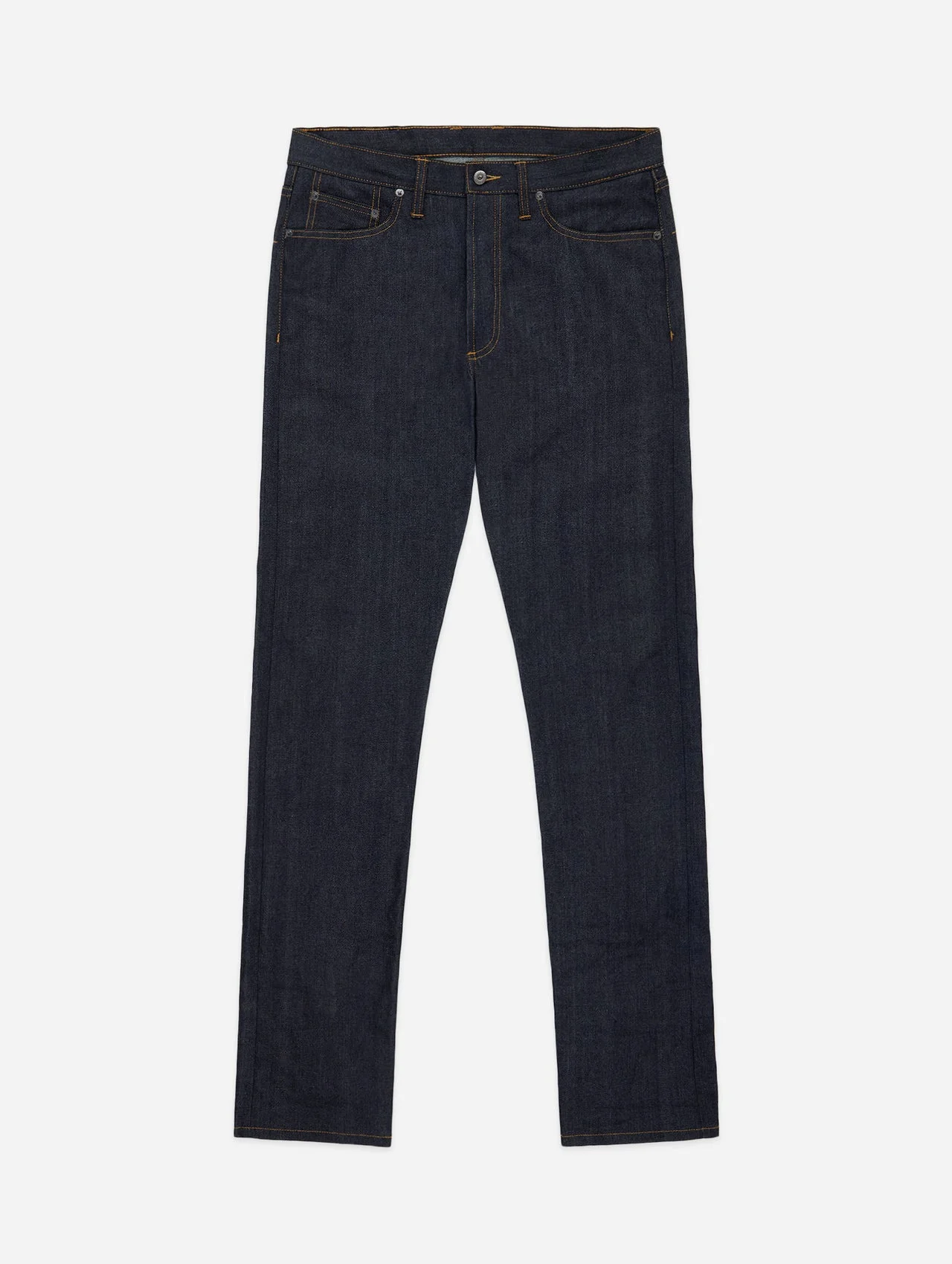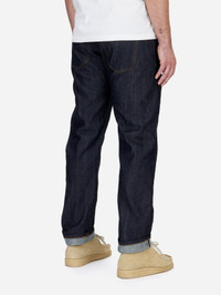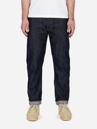 The CT-101x jean is cut and sewn in San Francisco, using a custom woven raw 12oz selvedge denim in Okayama, Japan by Kuroki Mills. Our best-selling Classic Tapered cut features a high rise and a roomy top block, coupled with a taper from the knee down for a modern straight leg silhouette. Each jean is given a light rinse to remove all shrinkage and make them incredibly comfortable from the first wear. The jean is finished with a hairy roughout leather patch along with branded gunmetal YKK rivets and shanks. Made in USA Sizing: This denim is sanforized and any further shrinkage in the fabric is minimal. You can expect the waist to stretch about 1" over the first 30 wears. When new, the jeans should be snug around the waist without being uncomfortably tight. Details - 12oz indigo warp/white weft selvedge woven in Okayama, Japan - Custom gunmetal shanks and rivets - Selvedge fly and coin pocket detailing - Tan roughout leather patch - Made in USA