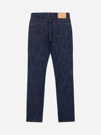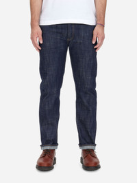 For our 20th anniversary, we have produced a special edition jean featuring denim woven by a small mill in Hiroshima, Japan. This 15.4oz denim utilizes organic cotton from Turkey, which is spun in a special process to create an unevenly twisted yarn. The yarn is then rope dyed twice the average amount in a natural indigo dye bath sourced from India, to create a unique blue shade with heavily saturated areas and lighter areas where the weft pokes through. This denim is sure to fade beautifully and will become a garment that is treasured for a long time. Our best-selling Classic Tapered cut features a high rise with a straight back yoke and a tapered leg from the thigh down. The 102xn Natural Indigo denim is raw and sanforized so shrinkage is minimal. Jeans should measure about 1" above tagged size in the waist. When new, the jeans should be snug in the waist without being painfully tight. They will stretch out comfortably within the first few wears. Trims include gunmetal YKK punch-through rivets and shanks, and a special 20 year anniversary vegetable-tanned leather patch. Made in USA. Details - 15.4oz indigo denim woven in Hiroshima, Japan - 100% cotton 8oz twill pocketing - 20y Anniversary vegetable tanned leather patch - Gunmetal YKK shanks - Made in USA