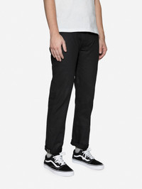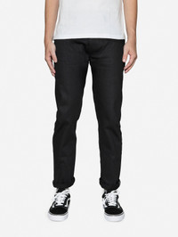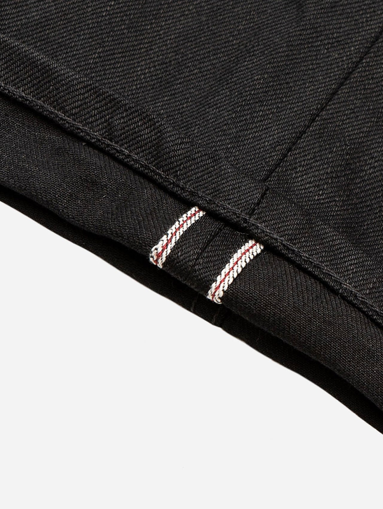 The CT-222x jean features our 12oz. Double Black selvedge denim which consists of black warp and weft threads. Our best-selling CT cut provides a high rise, room in the top block and a taper from the knee down. Each jean is given a light rinse to remove all shrinkage and make them incredibly comfortable from the first wear. The jean is finished with a hairy roughout leather patch along with branded gunmetal YKK rivets and shanks. Made in USA Sizing: This denim is sanforized and any further shrinkage in the fabric is minimal. You can expect the waist to stretch about 1" over the first 30 wears. When new, the jeans should be snug around the waist without being uncomfortably tight. Details - 12oz indigo warp/white weft selvedge woven in Okayama, Japan - Custom gunmetal shanks and rivets - Selvedge fly and coin pocket detailing - Tan roughout leather patch - Made in USA