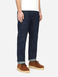 For our 20th anniversary, we have produced a special edition jean featuring denim that is custom woven for us in Japan. This 13.4oz denim utilizes cotton from Burkina Faso, one of Africa’s largest cotton producers. It has a deep, inky color with both vertical and horizontal streaking which will emerge beautifully over time. Our CT cut is a modern straight leg with a higher rise and roomy top block, coupled with a taper from the knee down for a clean silhouette. Trims include gunmetal YKK punch-through rivets and shanks, and a special 20 year anniversary vegetable-tanned leather patch. Made in USA. SIZING: Please check measurements carefully before purchasing. This denim is running large and we find that most customers can go down at least one, if not two sizes, from their usual CT size. Details - 1 - 3.4oz rinsed indigo selvedge denim - Garment Rinsed - Custom gunmetal shanks and rivets - Selvedge fly and coin pocket detailing - Vegetable-tanned leather patch - Made in USA