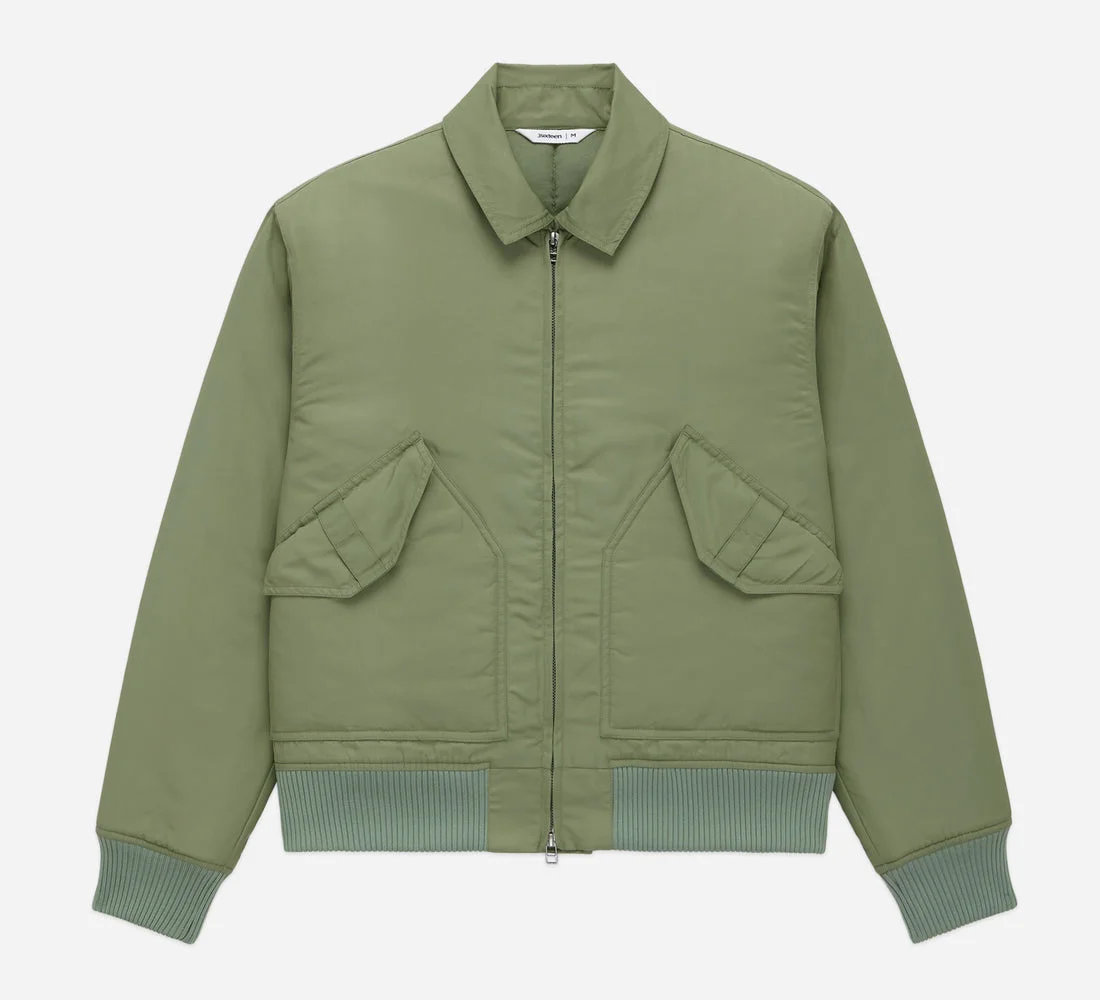 The CWU Flight Jacket is a modern interpretation of classic military aviator jackets with updated fit and detailing. This season's iteration features a 100% nylon fabric that's crafted of recycled fibers; it has a beautiful matte sheen that mimics the satin on vintage examples, coupled with a DWR coating for water repellence. The jacket also features a quilted tencel lining that provides comfort and warmth. While the classic boxy, cropped fit of the CWU-45P jacket remains largely unchanged, we've removed details like the chest patch and sleeve pocket that are not functional for daily wear. The collar features reinforcement stitching to allow it to stand easily, and the jacket is finished with gunmetal YKK double zips and heavyweight cotton ribbing on the cuffs and waistband. Details - Shell: 100% Recycled Nylon with DWR coating - Lining: 100% Tencel - Ribbing: 100% Cotton - Reinforced collar and stand - Gunmetal double YKK zipper - Made in India