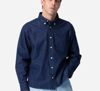 The Denim BD Shirt is a heavyweight buttondown collar shirt sewn up in a hefty Japanese selvedge denim. The shirt is given an enzyme treatment for softness without fading the fabric, which allows the wearer to put in the work to fade it. The Japanese denim has a crunchy hand, great texture, and will look better after each wear and wash. The shirt is finished with mother of pearl buttons and a locker loop on the back. Selvedge detailing runs up the inside placket of the shirt. Details - 100% Cotton - Mother of pearl buttons - Garment dyed - Made in Portugal