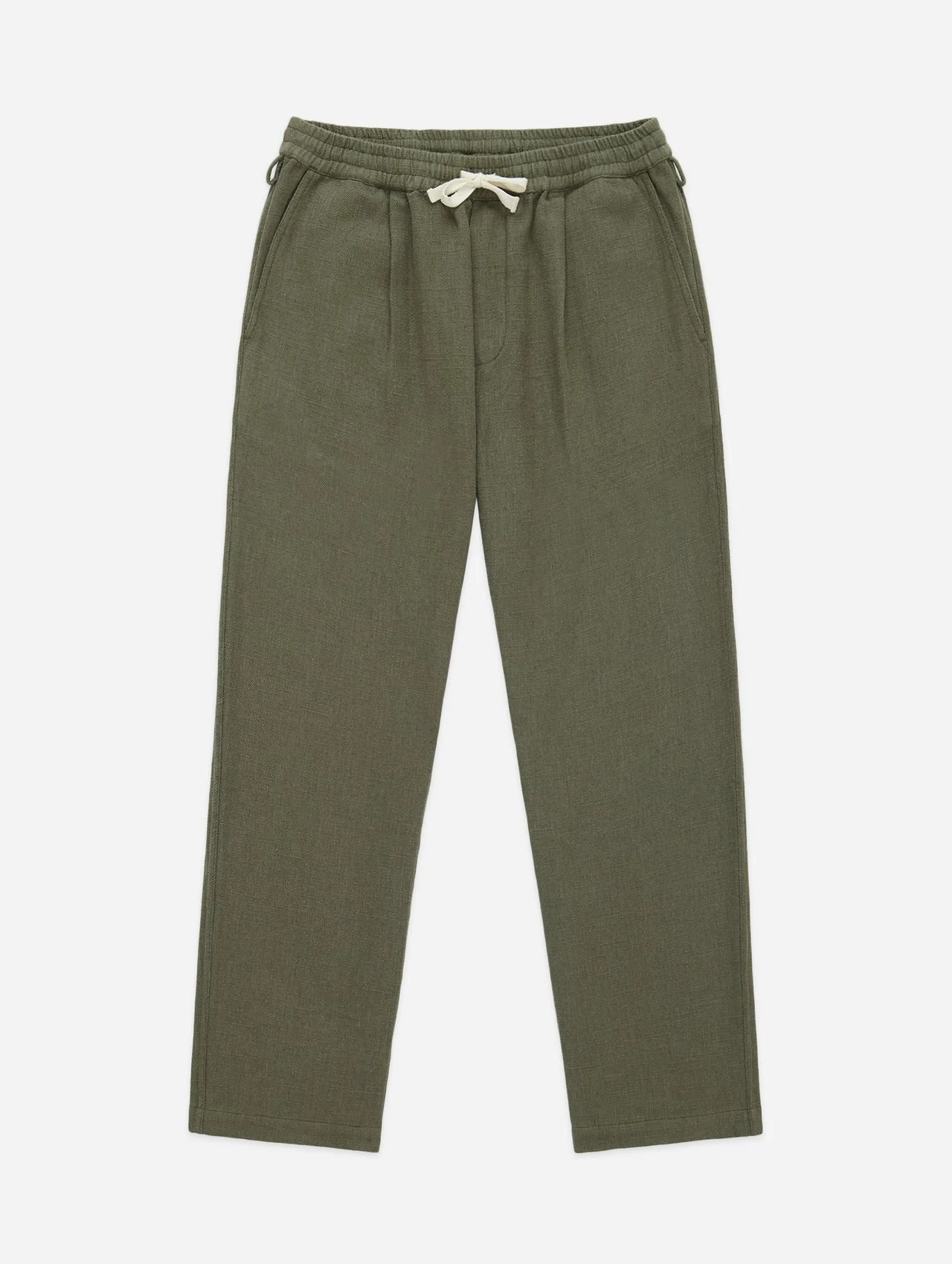 The Easy Pant features an elastic drawstring waistband and single front pleats. The fit is inspired by our CS cut - roomy top block with a straight leg - and is cut with a short inseam and longer rise. The pant is finished with reinforced rear patch pockets for added durability. This season we developed a heavyweight cotton/linen blend fabric thats drapes and breathes beautifully. Details - 55% Linen/45% Cotton - Drawstring and elastic waist - Reinforced pockets - Straight leg fit - Made in India