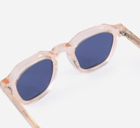 The Geometric SP-05 is a modern interpretation of some of our favorite mid-century silhouettes. Crafted by hand in Italy of 8mm bio-circular acetate, the construction of this frame shines in its combination of polished and raw finishes which give it depth and complexity. The legs are affixed with 5-barrel German steel hinges that sport functional triangular rivets and coated safety screws. Discreet branding comes by way of metallic logos on the outer temple tips, while the insides feature Japanese wave patterns laser etched in. Made in a family owned factory in Valdobbiadene, Italy. Details - 100% Italian acetate - Polished face and temples - Raw, unfinished lens bevels, frame top and temple tops - 5-barrel German steel hinges with triangular rivet configuration - Temple tip logo branding - Anti-slip grooves on temple tips - Frame width 144mm / Lens width 46mm / Bridge width 27mm - Handcrafted in Italy