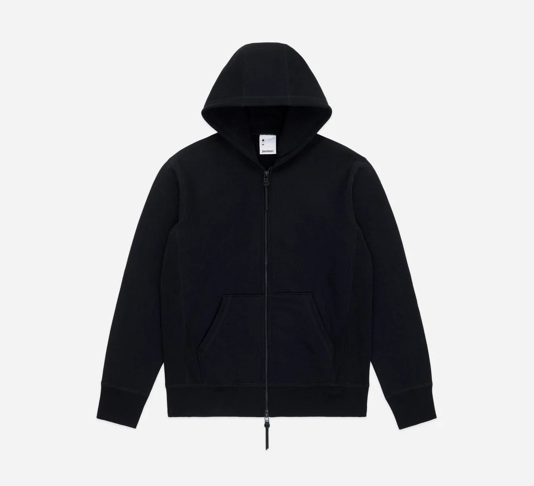 We've updated our heavyweight hoody with several improvements from previous runs: it now features an even beefier 500gsm fleece and a slimmer fit. The hoody also sports a black YKK double zipper and black rawhide leather zip pulls. Lastly, the hood drawstring has also been eliminated for a cleaner look. Made in Canada. PLEASE NOTE: Remove leather zip pulls before washing. Details - Preshrunk heavyweight 500gsm fleece - Matte black YKK double zipper - 3 piece hood construction - Rawhide leather zipper pulls - 100% cotton - Made in Canada