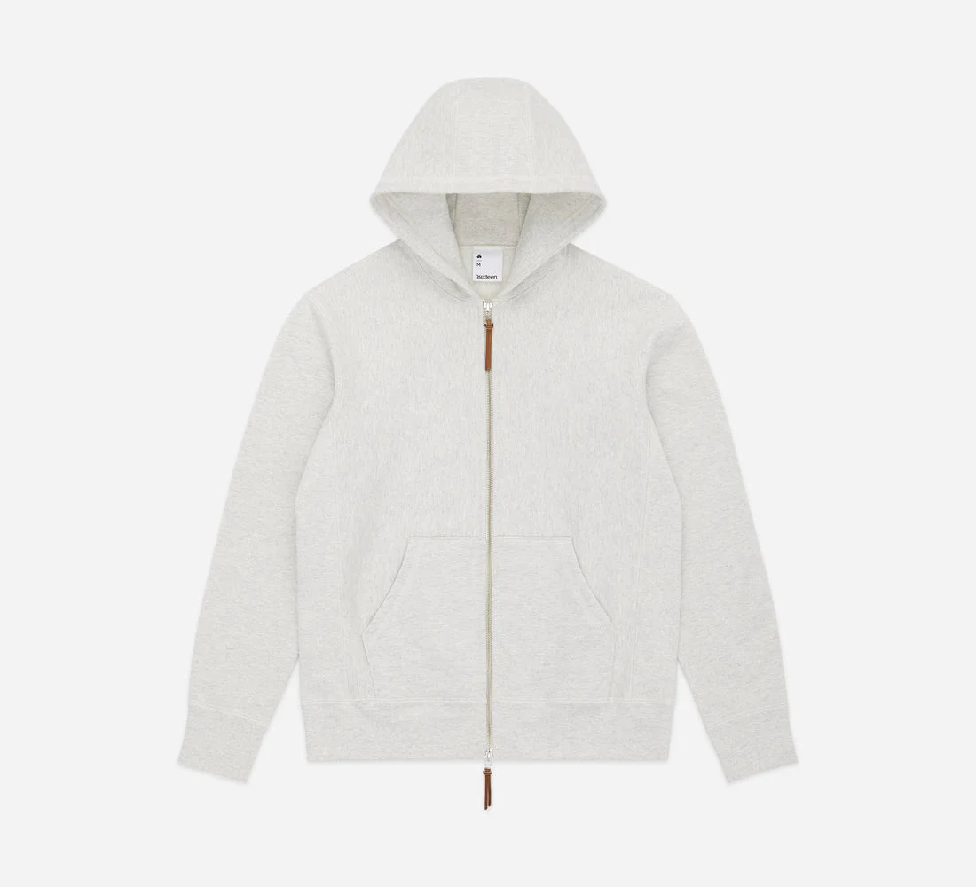We've updated our heavyweight hoody with several improvements from previous runs: it now features an even beefier 500gsm fleece and a slimmer fit. Lastly, the hood drawstring has also been eliminated for a cleaner look. The Oatmeal colorway is the newest addition to our fleece lineup. Made in Canada. PLEASE NOTE: Remove leather zip pulls before washing. Details - Preshrunk heavyweight 500gsm fleece - Gunmetal YKK double zipper - 3 piece hood construction - Rawhide leather zipper pulls - 99% cotton / 1% polyester - Made in Canada