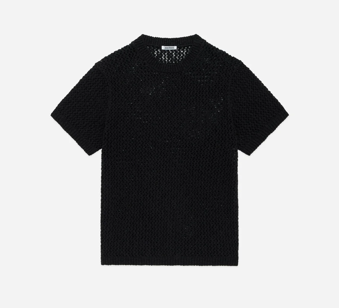 This brand new variation of our Knit Tee uses highly textured flamme Pima cotton yarns knit in a loose, open mesh pattern. The sweater is finished with ribbing at the collar, sleeves, and hem. Details - 100% Pima cotton yarn - Knit in Peru