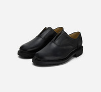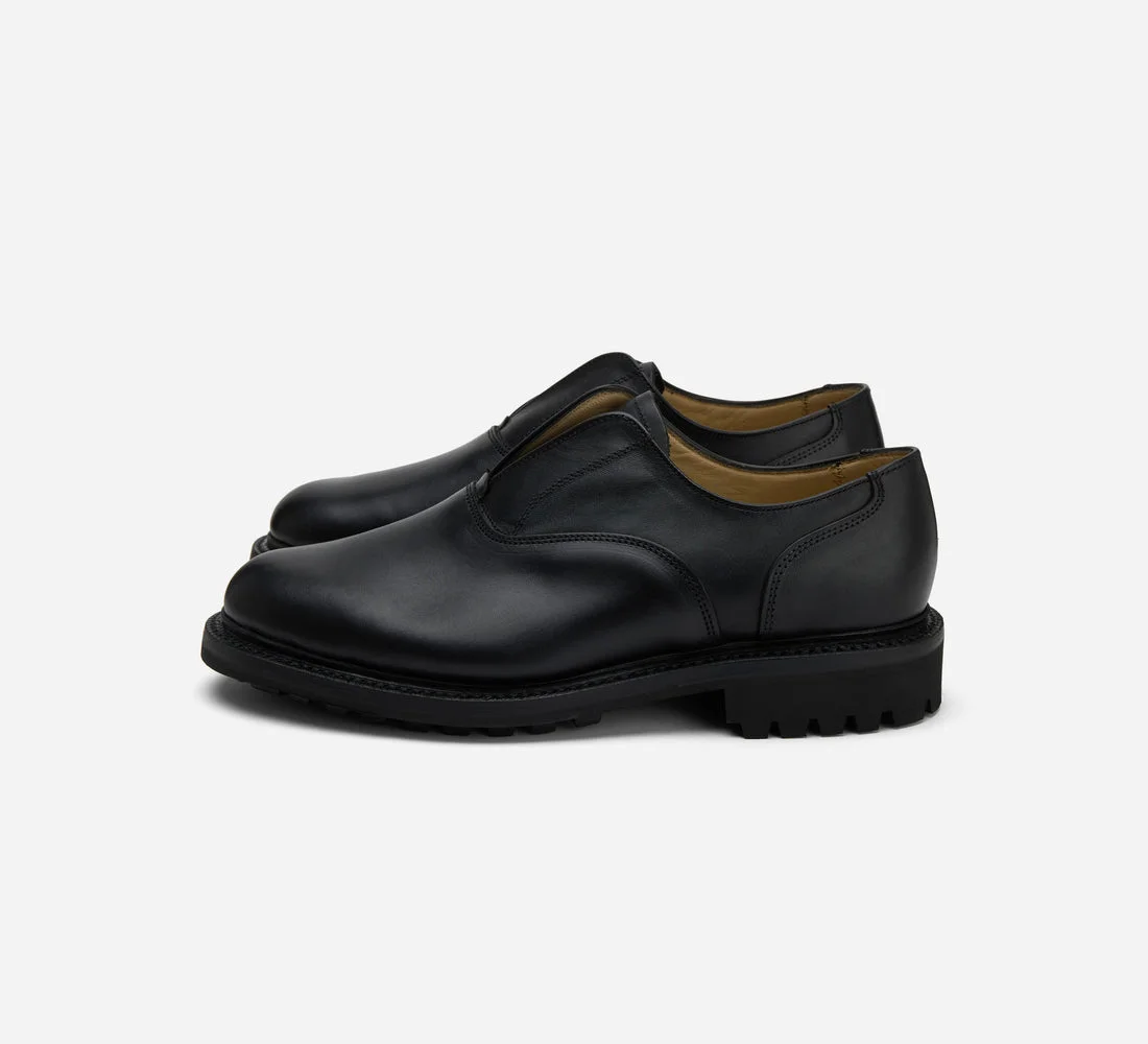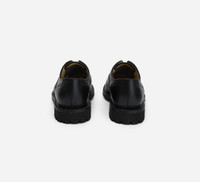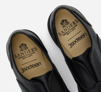 The Laceless Oxford is a custom makeup for 3sixteen by Sanders & Sanders, a heritage shoemaker based in the UK for over 150 years. We took a classic Sanders oxford and replaced the laces with a hidden elastic strap under the tongue. Then we added a lug sole for daily wearability and longevity. The result is an incredibly comfortable shoe with a sleek, modern look. Each pair is bench made in Sanders' Northampton factory. CARE: The matte finish of the leather makes for easy upkeep. Dirt and dust can be easily brushed off and cleaned off with a damp cloth with water only. SIZING: Please note that Sanders utilizes UK sizing; as such we recommend taking one size down from your usual sneaker size. Details - Waxy black leather upper - Goodyear welted - Commando sole - Made in England