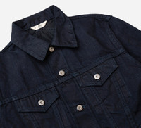 Our Type 3s denim jacket pays homage to the classic Type III design with a few notable differences. The body has been slightly lengthened and we've added hand pockets that are lined with 100% cotton 8oz twill pocketing. Absent from the jacket are the standard Type III back seams and waist cinches; we opted to give the back of the jacket a cleaner design by replacing the original yoke with our trademark crossed back. Our Lightweight Type 3s Jacket features the same 12oz lightweight denim that is found in our bottoms collection, and just like the jeans, it features a light garment rinse and line dry to soften the fabric and give it a broken-in feel. Details - 12oz Shadow denim woven in Okayama, Japan - 100% cotton 8oz twill pocketing - Once rinsed - Zigzag stand-collar reinforcement stitching - Gunmetal YKK shanks - Crossed back yoke - Made in USA