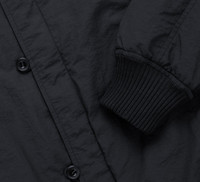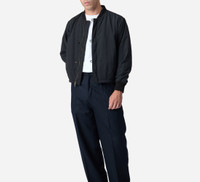 The Loop Bomber is a style that pulls from many inspiration pieces. It has the front loop closure of M43 Field Jacket Liners, with the cropped, generous fit and body of 80's bomber jackets. It's sewn up in a Japanese nylon fabric with a dry hand and lined in a slick nylon for comfort. We chose a bamboo fill for it's moisture-wicking and temperature-regulating properties as well as it's loft and softness. The bottom hem is darted for shaping instead of using ribbing, making it easier to layer. Heavyweight cotton ribbing rounds out the cuffs and collar. Details - Shell: 100% Nylon - Lining: 100% Nylon - Fill: 100% Bamboo - Straight bottom hem - Welt pocket front - Double zipper - Made in India
