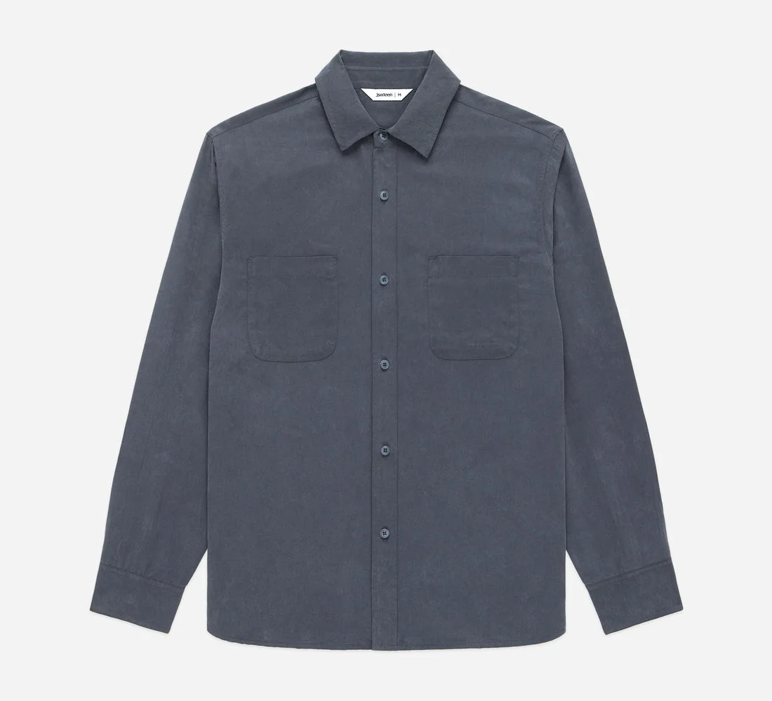 The Mechanic Shirt pulls detailing from both classic garage shirts and standard button-down oxfords. This shirt is crafted of a beautiful lyocell fabric that has a silky hand that contrasts nicely with what you'd typically find on a workshirt-inspired shirt. Lyocell is often described as a "miracle fabric" in that it's made of regenerative tree pulp in a sustainable closed-loop system. We love lyocell for its lofty, airy feel and its moisture-wicking, temperature regulating properties. The shirt features rounded double chest pockets, a call back to vintage workshirts, and a simple button-front placket. The shirt is finished with vintage workwear-inspired corozo buttons. Details - 100% Lyocell - Corozo buttons - Made in India